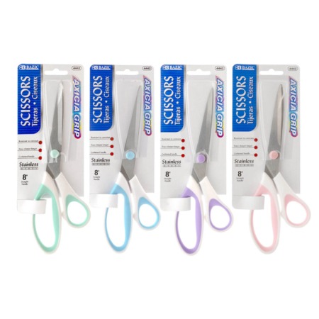 Bazic Axicia Multipurpose Office Scissors 8″ Pastel Soft Grip Elegant and Stylish. 8.4″ x 3″. 4 Macaroon Colors. *minimum order 4 units assorted 4 colors (order in increments of 4)