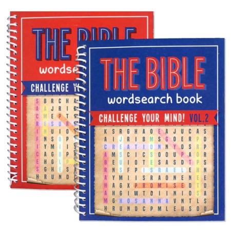 Spiral Bound Bible Puzzle WORD SEARCH Book Volume 1 and 2. Each spiral-bound book is packed with challenging Bible wordsearch puzzles *minimum order 6 units (order in increments of 6)