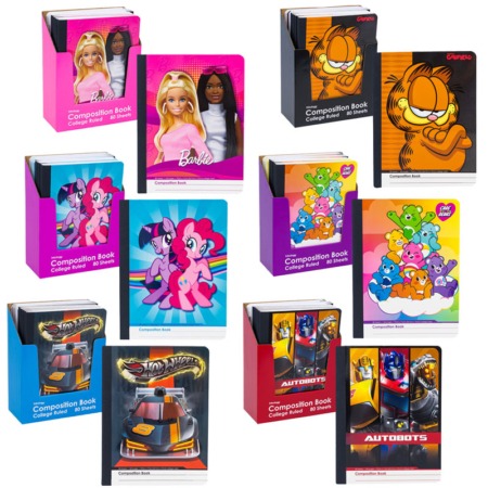 80 Sheets Composition Notebook College Ruled Licensed Barbie – Care Bears – Garfield – Hot Wheels – My Little Pony – Transformers *minimum order 12 units assorted 6 designs* (order in increments of 12 mix)