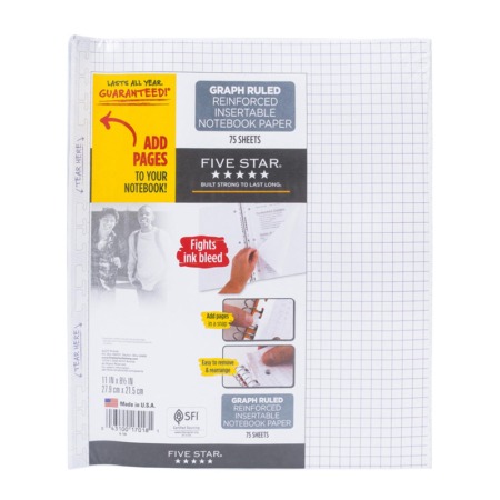 • 75 Sheets Five Star Graph Ruled Reinforced Insertable Notebook Paper 11″ x 8.5″ *minimum order 6 units* (order in increments of 6)