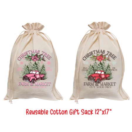 12″x17″ 5oz Cotton Canvas Santa Sack Style Reusable Gifting Bag Mix CHRISTMAS TREE FARM MARKET SRP $11.99 each *minimum order 6 bags assorted* (order in increments of 6 mix)