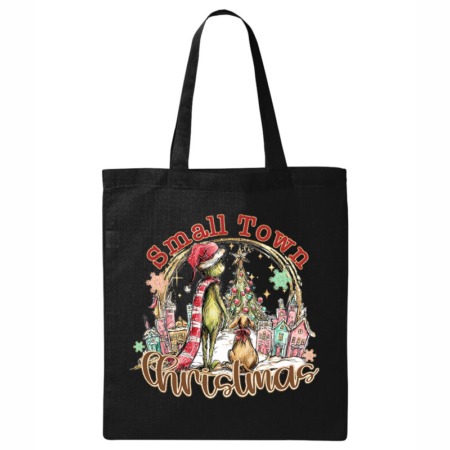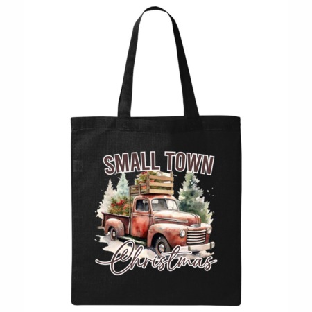 15″x16″ 5oz Cotton Canvas Shopping Tote SMALL TOWN CHRISTMAS One Design A Black 26″ Shoulder Straps *minimum order 3 units* (order in increments of 3) **12 units left in stock**