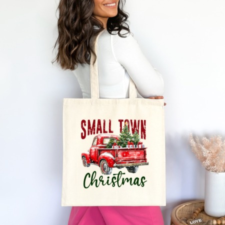 15″x16″ 5oz Cotton Canvas Shopping Tote SMALL TOWN CHRISTMAS One Design B Natural Beige 26″ Shoulder Straps *minimum order 3 units* (order in increments of 3) **12 units left in stock**