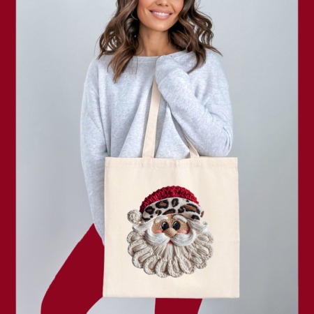 15″x16″ 5oz Cotton Canvas Shopping Tote FAUX KNITTING STITCH SANTA CLAUS Natural Beige 26″ Shoulder Straps *minimum order 3 units* (order in increments of 3) **6 units left in stock**
