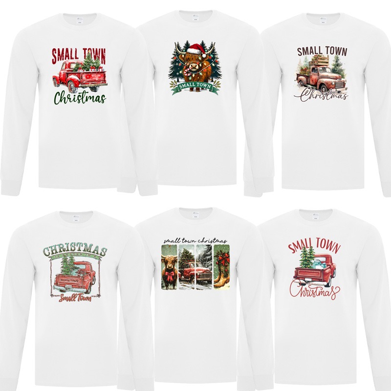 1 Long Sleeve T-Shirt SMALL TOWN CHRISTMAS 6 Assorted Designs