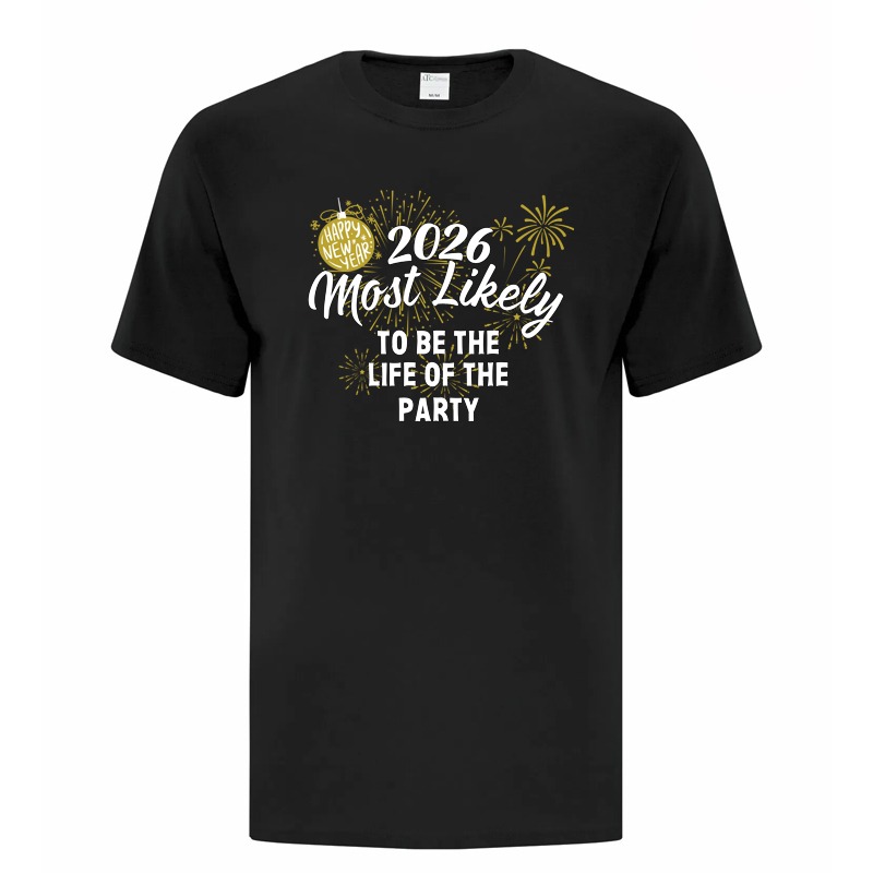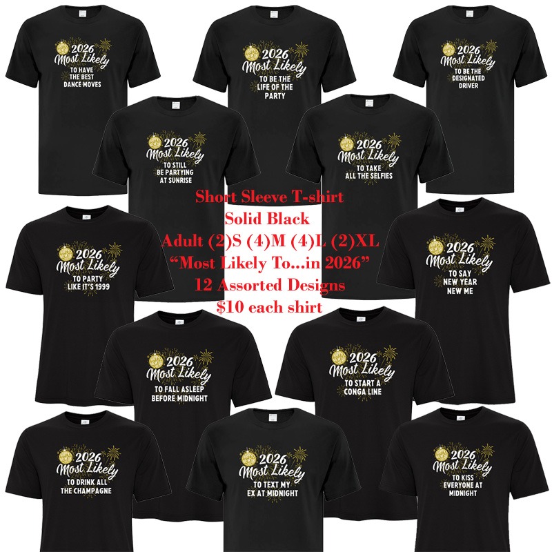 1 Short Sleeve T-Shirt MOST LIKELY TO… 2026 NEW YEAR – 12 Assorted Designs