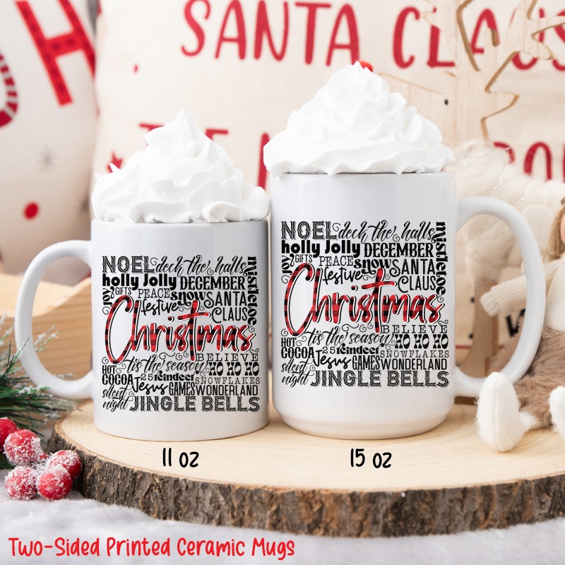 11oz Ceramic Mug Christmas Festive Novelty Mug All White Inner & Handle – ARTSY CHRISTMAS WORDS
