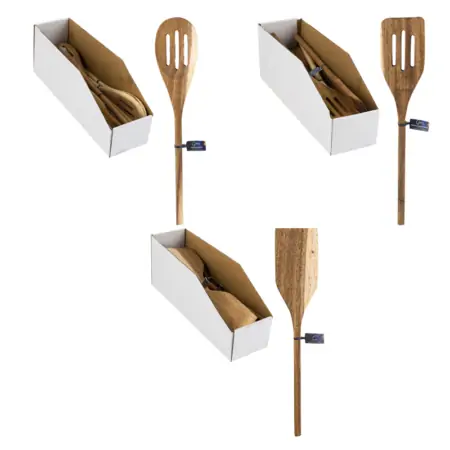 Slotted Spoon 12″ Acacia Wood UPC 085081636492 Slotted Turner 12″ Acacia Wood UPC 085081636522