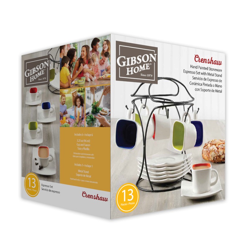 Gibson Home Crenshaw 13Piece 3.25 Oz Espresso & Saucer Set with Metal Stand