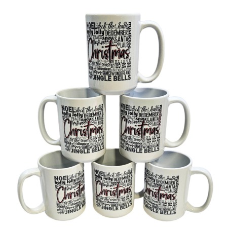 15oz Ceramic Mug Christmas Festive Novelty Mug All White Inner & Handle – ARTSY CHRISTMAS WORDS