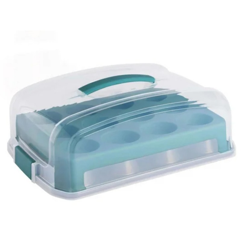 Spice By Tia Mowry 24-Cup Carbon Steel Muffin Pan With Carrier in Teal