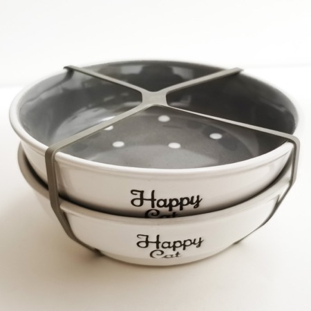 You are here: Home1 / Products2 / 01 New Arrivals3 / 2Piece 4.9″dia. Small Pet Ceramic Food Dish HAPPY CAT GREY Handcrafted...