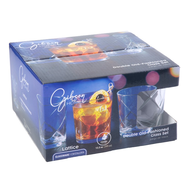 Gibson Home 4Piece 13.5 oz Double Old Fashioned Glass Set LATTICE Pattern
