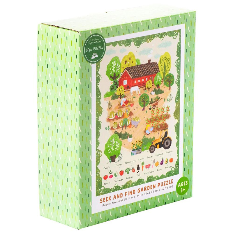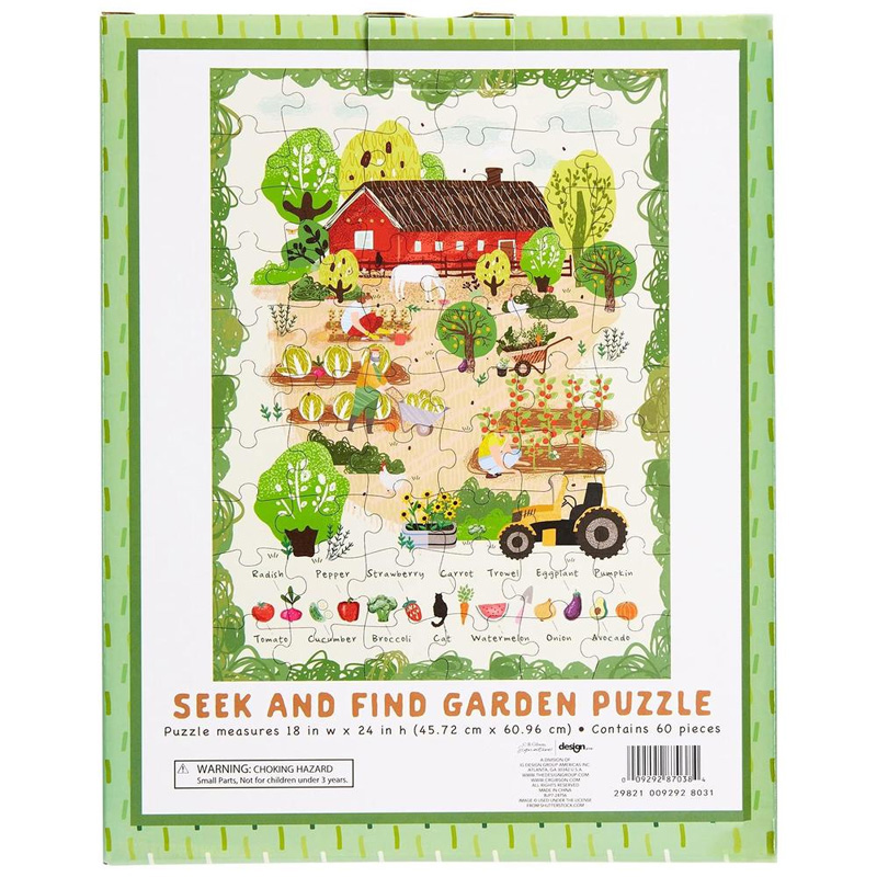 CR Gibson Garden Seek and Find Floor Puzzle 60-Piece Jigsaw Puzzle for Kids 18” W x 24” H Assembled.