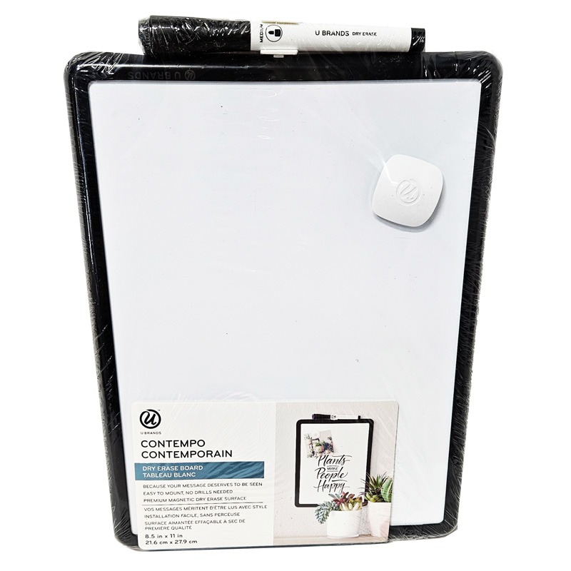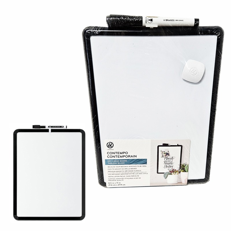 U Brands 8.5″ x 11″ Black Contempo Frame Dry Erase Board with Dry Erase Marker and Magnet