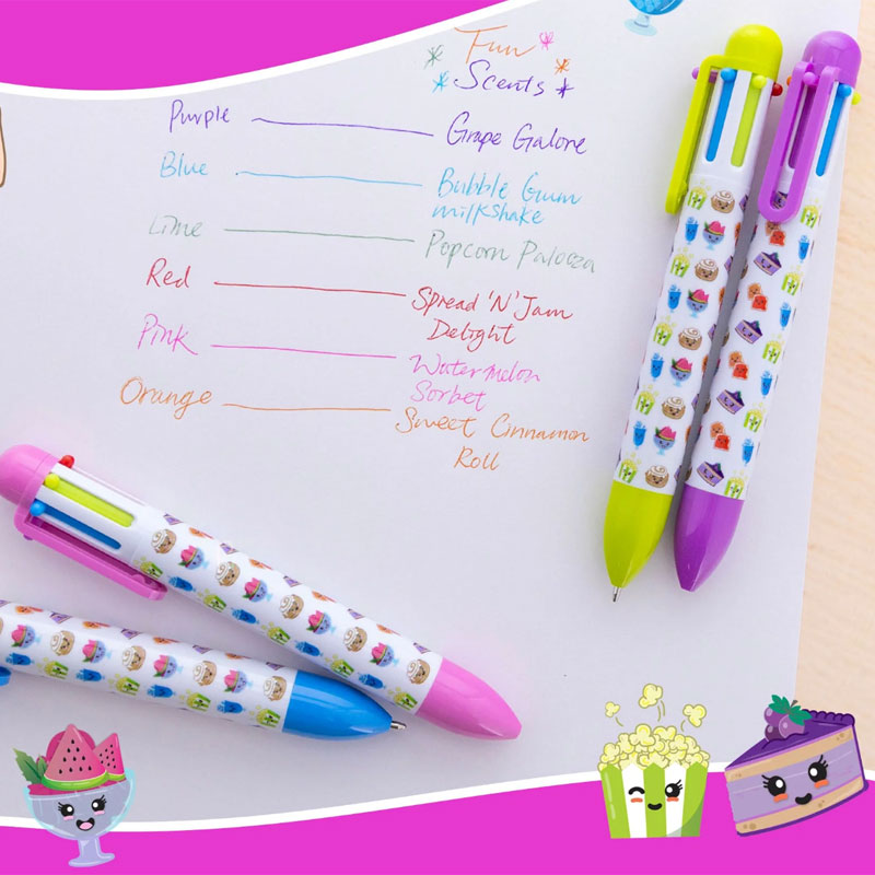 This Multicolor Pen features 6 scents – Popcorn Palooza, Sweet Cinnamon Roll, Watermelon Sorbet, Grape Galore, Spread ‘n’ Jam Delight, and Bubblegum Milkshake all in one.