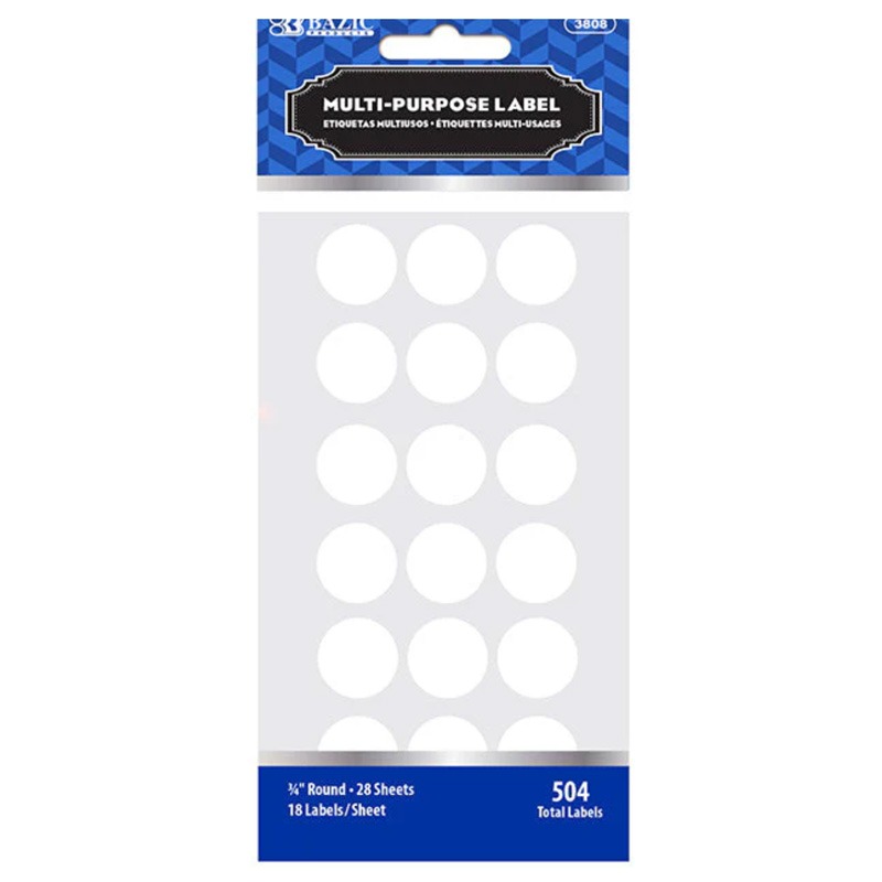Bazic White Label 3/4″ Round Total 504 Labels per Pack.