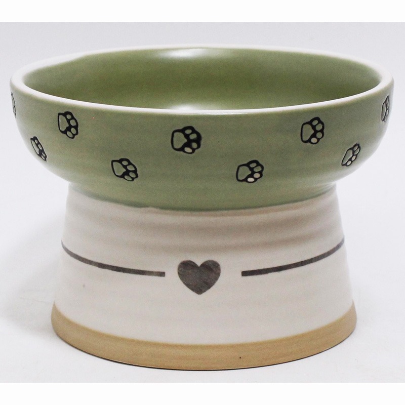 Handcrafted Rustic 4.4″dia. Ceramic Pedestal Small Pet Food Dish HEART RING