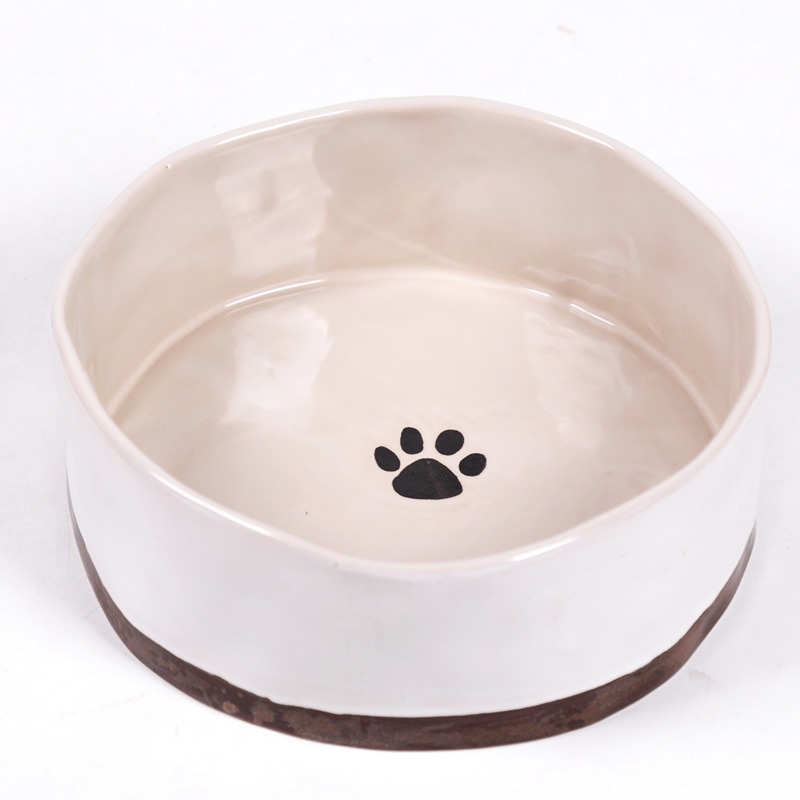 Handcrafted Rustic 4.9″ R DRIP SMALL PET BOWL Rustic Shape / Pawprint