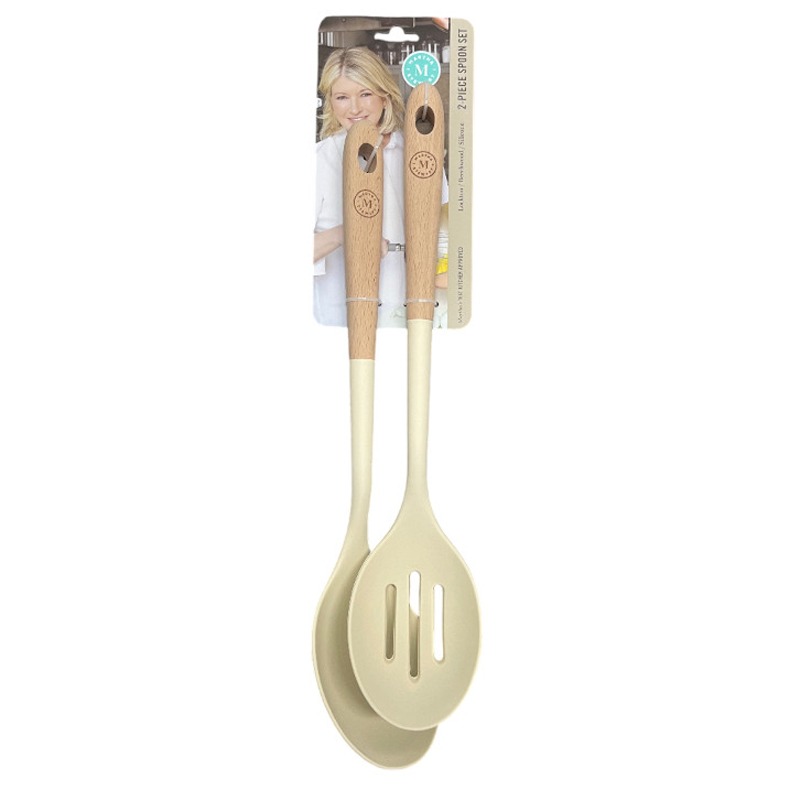 Martha Stewart Lockton 2Piece 15″ Slotted Spoon & Solid Spoon Cooking Tools Beech Wood Handle Silicone Nylon Head *minimum order 2 sets (order in increments of 2)