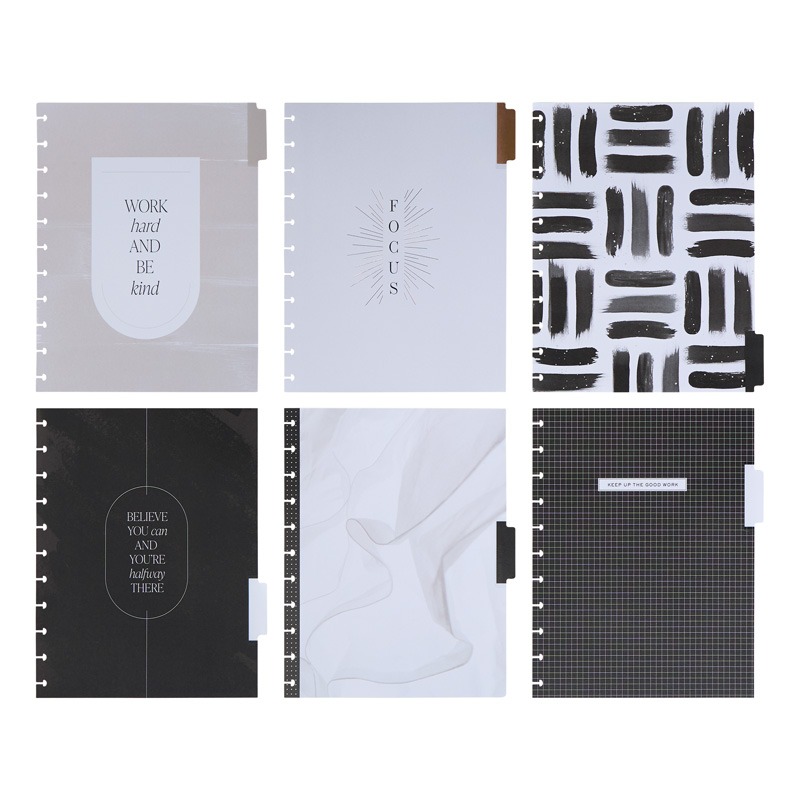 6 dividers decorated with a monochrome color scheme, contemporary designs, and motivational quotes