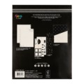 sticker sheets: 4.75in X 9in; notepads: 8.5in X 11in; bookmark: 3in X 11.375in; and pocket folder: 9.12in X 11.12in
